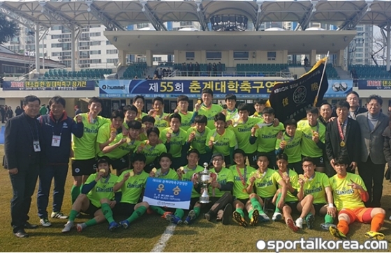 명지대는 26일 통영공설운동장에서 열린 제55회 춘계대학축구연맹전 KBSN배 왕좌에 올랐다. 울산대와 격돌, 2-1 승리로 최후의 승자가 됐다. 춘계연맹전 우승은 1978년 이후 처음 있는 일이다.