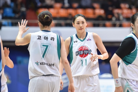 KEB하나는 7일 인천도원체육관에서 열린 우리은행 2018~2019 여자프로농구 인천 신한은행과 7라운드 원정 경기에서 62-52로 승리했다. 5위 KEB하나는 12승 22패를 기록했다. 정규리그 남은 1경기를 이겨도 4위 수원 OK저축은행(13승 21패)을 따라잡을 수 없다. 상대 전적에서 밀리기 때문이다. 하지만 이 경기 승리를 통해 연패 탈출, 자신감을 얻었다.