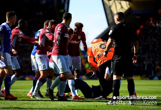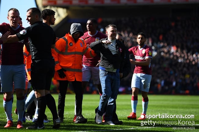 경기 시작 9분 만에 사건이 발생했다. 볼이 라인을 벗어나면서 경기 진행이 잠시 멈춘 틈에 버밍엄 팬 한 명이 경기장에 들어왔다. 팬은 곧장 그릴리쉬에게 달려가더니 오른손으로 안면을 가격했다. 빌라 동료가 난입한 팬을 가로막았지만 그릴리쉬는 갑작스런 공격에 몸이 붕떠 바닥에 넘어지며 큰 충격을 받았다.
