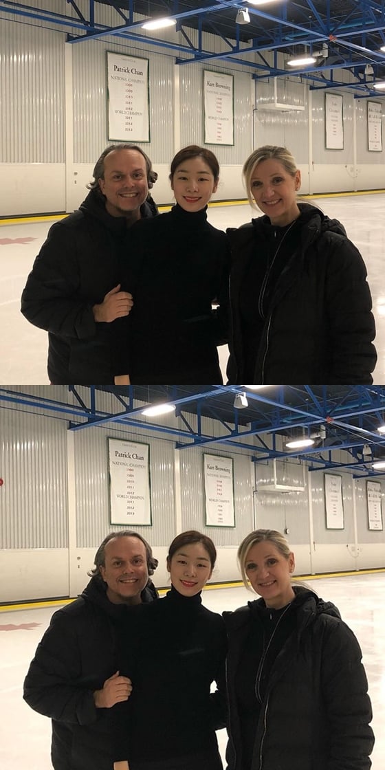 김연아는 13일 자신의 인스타그램에 "데이비드, 산드라와 함께, 다시 만나서 반가워(with David and Sandra Good to see you again)"이라는 글과 함께 사진을 게재했다.