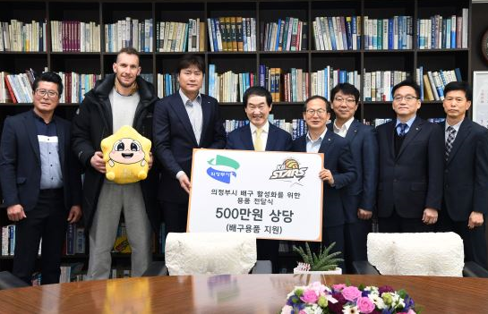 및 안병용 시장을 비롯한 다수의 배구 관계자가 참석한 가운데 의정부시 배구 활성화를 위한 500만원 상당의 배구 용품을 지원하는 전달식을 가졌다.