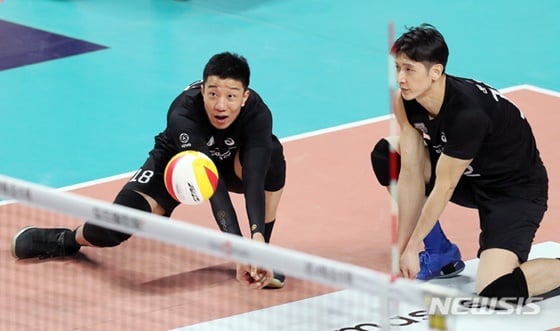 현대캐피탈의 신영석(왼쪽)과 문성민. / 사진=뉴시스