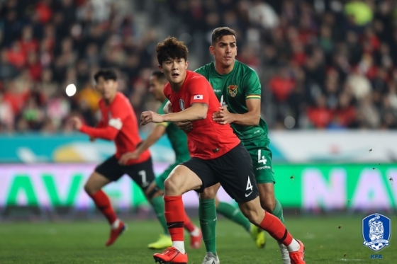 이번 대표팀은 수비진 구성이 다소 뒤숭숭했다. 김진수가 독감으로, 정승현이 햄스트링 부상으로 짐을 싸 돌아갔다. 중앙 수비수 옵션이라면 터줏대감 김영권 외 김민재, 권경원, 박지수 등. 벤투 감독은 볼리비아를 맞아 권경원-김민재를 포백의 뼈대로 삼았다. 중국 슈퍼리그행과 관련해 논란이 없지 않았던 이들. 특히 최근 베이징 궈안 유니폼을 입은 김민재는 적잖은 비판에 직면해야 했다.