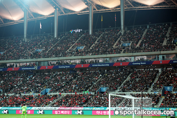 [스포탈코리아=상암] 김성진 기자= 벤투호에 향한 뜨거운 사랑은 서울에서도 이어졌다. A대표팀이 올해 첫 국내 A매치인 3월 A매치 2경기가 모두 매진되며, 6경기 연속 A매치 매진 기록을 세웠다.