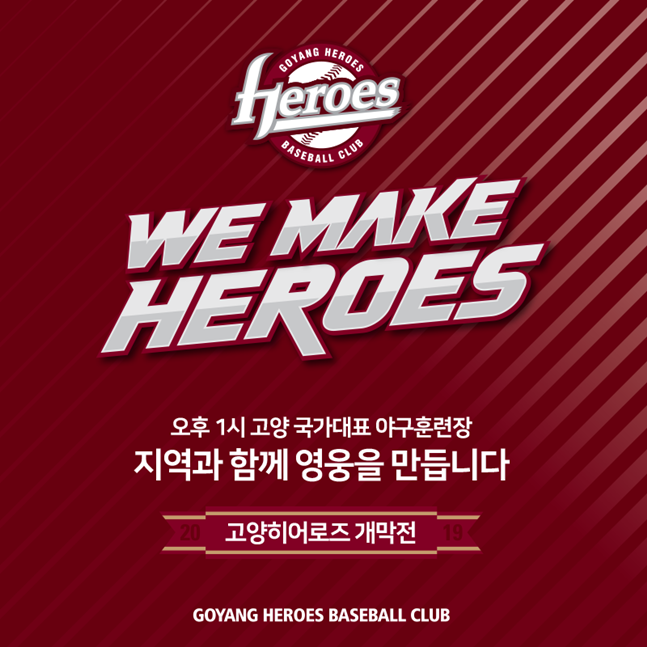 키움히어로즈의 퓨처스팀 고양히어로즈가 오는 29일 오후 1시 고양 국가대표 야구훈련장에서 펼쳐지는 한화이글스와 2019 퓨처스리그 홈 개막전을 맞아 개막 이벤트 ‘We make heroes’를 진행한다.
