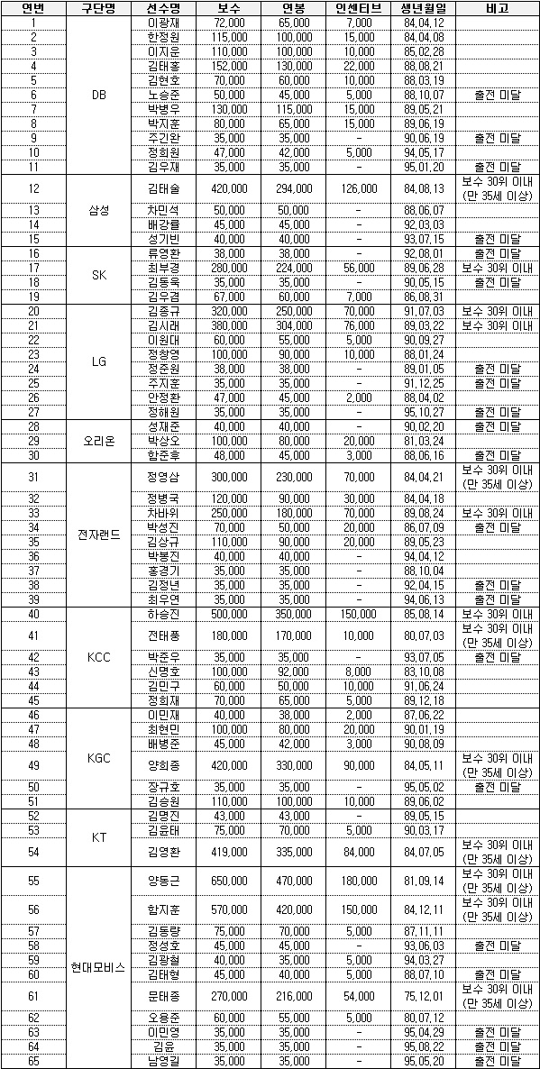 한편 FA 대상자 중 출전경기(27경기) 미달에 따른 계약 연장 여부는 30일 확정해 발표할 예정이다.