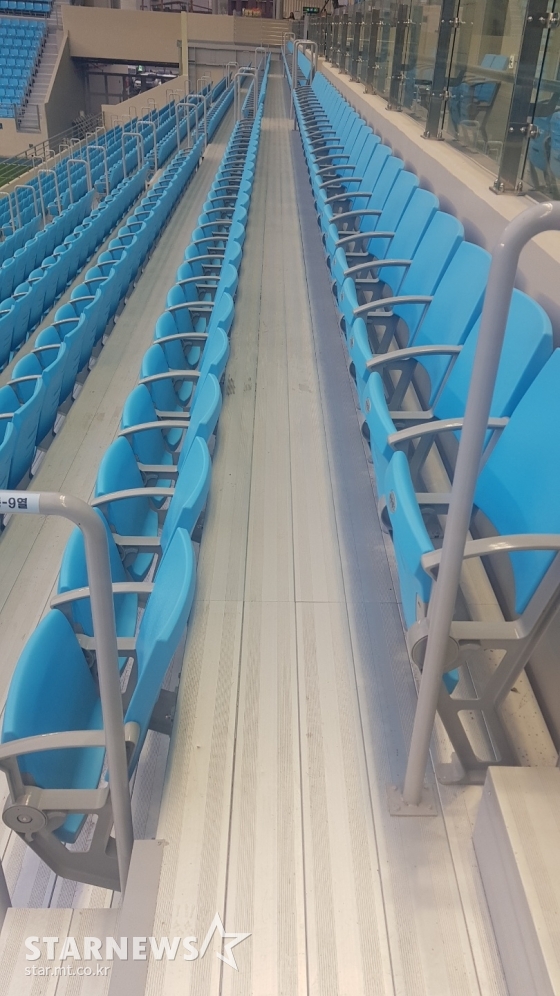 조광래 대표는 "알루미늄 바닥 또한 의도한 것이다. 미국프로풋볼(NFL) 경기장에서 영감을 얻었다. 손뼉으로 치는 것보다 팬들이 뛰면서 소리를 내는 것이 효과도 더 컸고, 멋있었다. 나 혼자만의 결정도 아니고, 설계 담당자들과 함께 답사하며 안전도 고려했다"고 했다.
