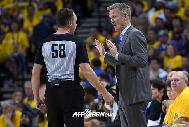 한편 이런 휴스턴의 잇단 판정 불만 제기에 대해 골든스테이트 역시 불쾌하다는 의사를 감추지 않았다. 스티브 커 골든스테이트 감독은 30일 기자회견을 위해 입장한 자리에서 샌프란시스코 지역 한 여기자의 팔을 붙잡고 우스꽝스런 자세로 뒤로 넘어진 뒤 “이건 앤(기자의 이름)의 반칙”이라고 말해 웃음을 자아냈다.