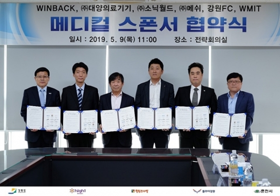 [스포탈코리아] 홍의택 기자= 강원FC와 (재)원주의료기기테크노밸리, WINBACK, 대양의료기, 소닉월드, 메쉬가 업무협약을 체결했다.