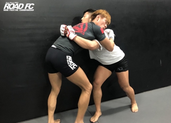 훈련 중인 권아솔(오른쪽). /사진-로드FC