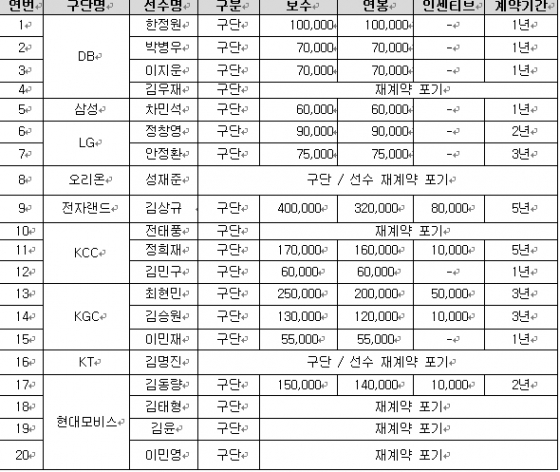 이에 따르면 지난 1일부터 15일까지 진행된 2019 KBL 자유계약 선수(FA) 원소속 구단 협상에서 총 56명의 대상자 중 27명의 선수가 원소속 구단과 재계약을 체결했고, 20명이 재계약이 결렬돼 FA 시장에 나왔다.