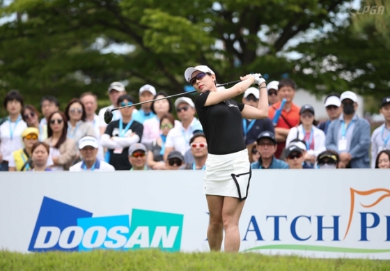 김지현은 18일 강원도 춘천의 라데나 골프클럽(파72·6246야드)에서 열린 대회 8강전에서 조정민(25·문영그룹)에 1홀차로 승리했다.