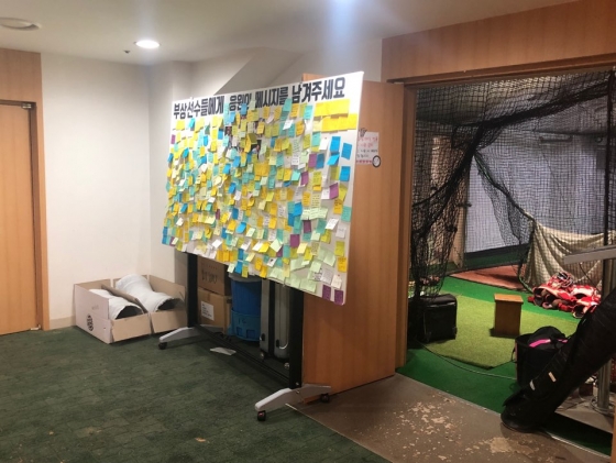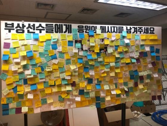 당초 SK 측은 말소 선수들을 중심으로 메시지를 받으려 했지만, 다양한 응원 메시지가 들어와 고민에 빠졌다는 후문이다. 이에 19일 경기를 앞두고 출근하는 선수들이 힘을 얻을 수 있도록 18일 경기 이후 라커룸 통로 쪽으로 메시지 보드를 운반했다. 당연히, 부상 선수들에게는 관련 내용을 따로 정리해 선물할 예정이다.