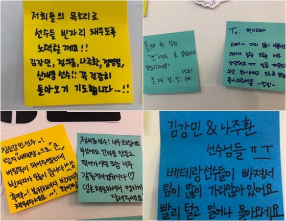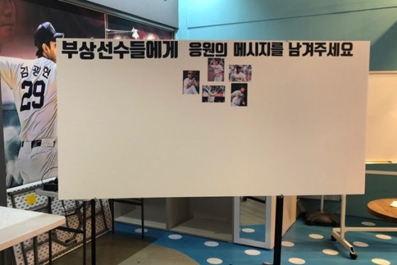 걱정하는 마음은 누구나 똑같다. 선수단도 선수단이지만, SK 팬들 역시 아쉬움을 감출 수 없었다. 이에 SK 구단 직원들은 18일 두산전을 앞두고 부상 선수들을 위한 응원 메시지 보드를 운영하는 깜짝 이벤트를 마련했다.