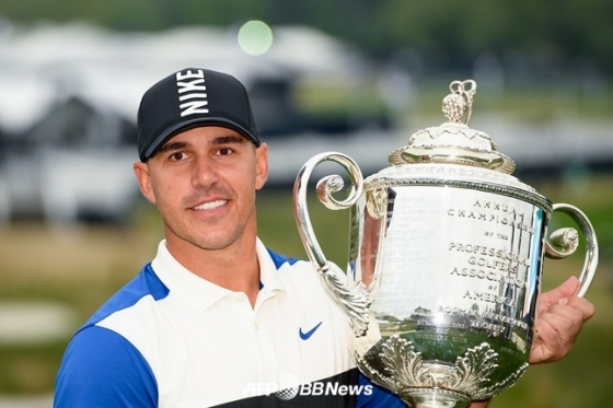 '메이저 사냥꾼' 브룩스 켑카(미국)가 시즌 2번째 메이저대회 PGA챔피언십(총상금 1050만달러)에서 대회 2연패에 성공했다. 우승 확정 후 안도의 한숨을 내쉬었다.