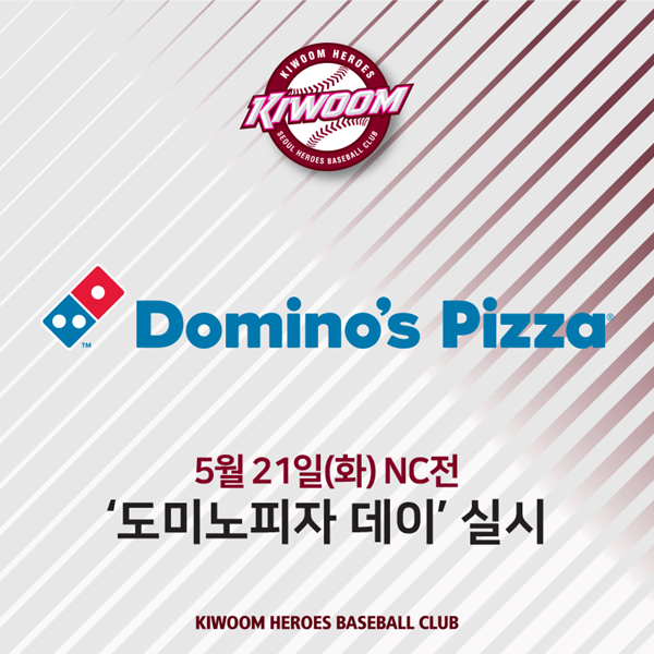 키움히어로즈가 21일 오후 6시30분 서울 고척스카이돔에서 펼쳐지는 NC다이노스와의 경기에 '도미노피자 데이'를 실시한다.