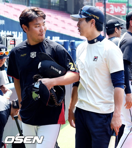 지난 21일 수원KT위즈파크에서 열린 두산-KT전이 끝난 뒤 한 장면이 화제가 됐다. 바로 박건우와 장성우가 알콩달콩 신경전을 벌이는 모습이었다.