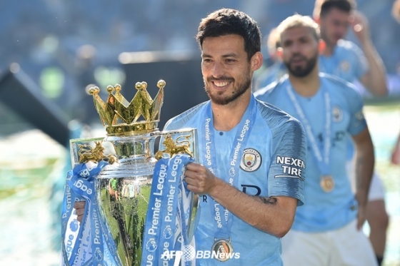 2018~2019시즌 우승을 차지한 후 우승컵을 들고 포즈를 취한 다비드 실바. /AFPBBNews=뉴스1