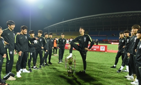 김정수 감독이 이끄는 U-18 대표팀은 지난 29일 중국 청두에서 끝난 2019 판다컵 대회에서 우승을 차지했다. 하지만 우승 세리머니 과정에서 일부 선수가 트로피에 발을 올리는 등 추태를 보여 중국이 분노했다.