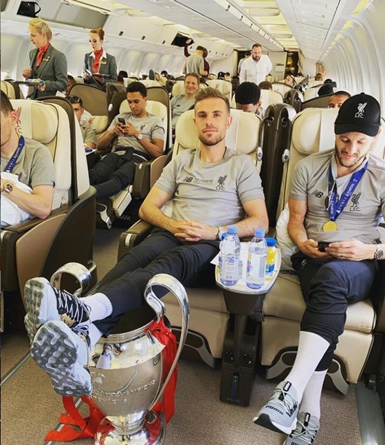 리버풀 선수단은 곧바로 리버풀로 건너가 유럽챔피언스리그 우승 기념 카퍼레이드를 펼칠 예정이다. 핸더슨도 리버풀로 가는 비행기에서 이 사진을 올린 것으로 보인다.
