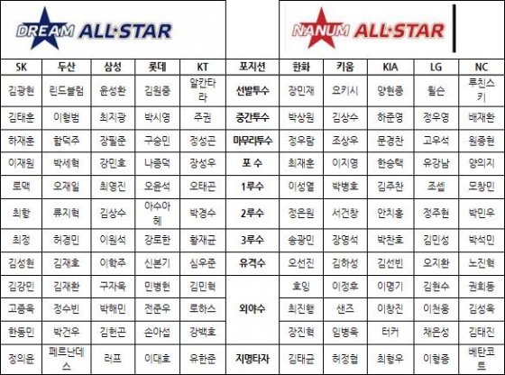 오는 7월 20일 창원NC파크에서 개최되는 2019 KBO 올스타전은 드림 올스타(SK, 두산, 삼성,롯데, KT)와 나눔 올스타(한화, 키움, KIA, LG, NC)로 팀을 나눠, 각 구단으로부터 추천 받은 후보 선수 120명을 대상으로 팬 투표와 선수단 투표를 거쳐 양 팀의 ‘베스트12’ 24명이 최종 선정된다.