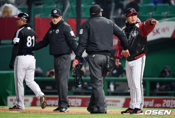 항의하는 류중일 LG 감독(맨 오른쪽·사진은 기사의 특정 내용과 관계 없음). /사진=OSEN