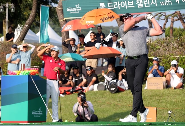 기자회견 후에도 시행착오는 있었다. A조 김비오와 헨드의 연습이 시작됐다. 각자 4개의 티샷을 날렸다. 김비오는 헨드에 못지 않은 비거리를 뽐냈다. 분위기는 순식간에 후끈 달아올랐다.