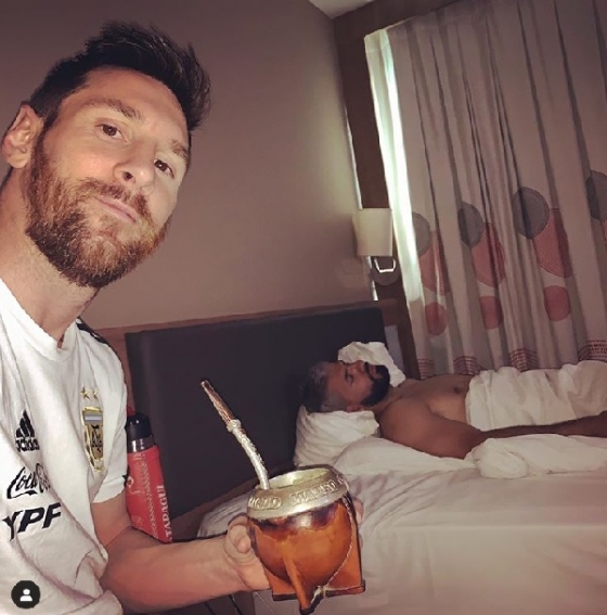사진에는 한 손에 마테차를 든 메시의 모습과 옆 침대에 누워 정신없이 자는 아구에로가 담겨 있다. 메시가 “룸메이트와 마테차를 즐기고 있다”는 멘트와 사진을 본인 인스타그램에 올렸다. 그러나 아구에로는 마테차 대신 꿀잠을 청하고 있다.