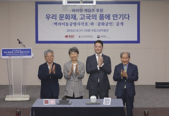 온라인 게임 '리그 오브 레전드(이하 LoL)'의 개발 및 유통사인 라이엇 게임즈가 19일 서울시 종로구 세종로에 위치한 국립고궁박물관 강당에서 문화재청, 국외소재문화재재단 및 국립고궁박물관과 함께 '우리 문화재, 고국의 품에 안기다 – 백자이동궁명사각호와 중화궁인 언론공개회'를 진행했다.