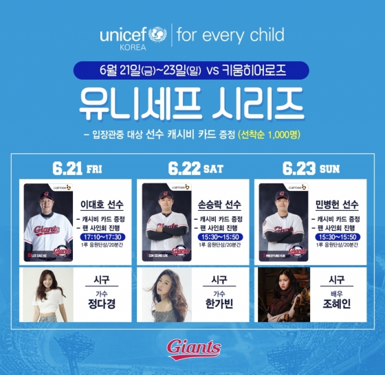 롯데 자이언츠와 유니세프 한국위원회가 오는 21일부터 열리는 키움 히어로즈와 주말 3연전서 이번 시즌 2번째 유니세프 시리즈를 개최한다.