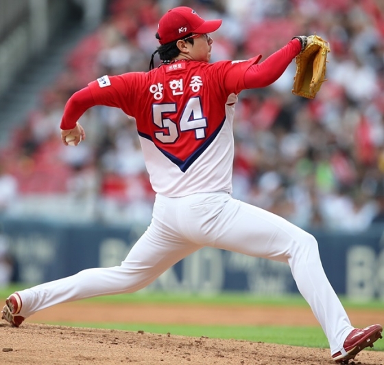 양현종의 투구가 강렬했다. 이날 양현종은 7이닝 4피안타 1볼넷 5탈삼진 무실점의 호투를 뽐내며 승리투수가 됐다. 시즌 8승(7패)에 최근 7연승. 4월까지 5패, 평균자책점 8.01에 그쳤지만, 어느새 평균자책점 3.48이 됐다.