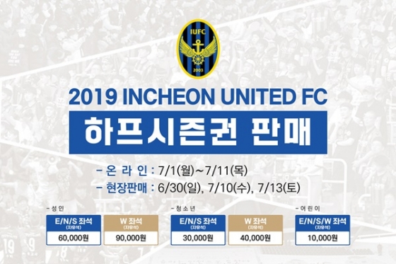 [스포탈코리아] 정현준 기자= 인천유나이티드(대표이사 전달수)가 6월 30일 홈경기부터 2019시즌 홈경기 하프시즌권 판매를 시작한다.