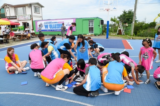 WKBL은 29일 강원도 강릉의 참사랑지역아동센터에서 '스포츠토토와 함께하는 W위시코트 캠페인 시즌2' 행사를 진행했다.