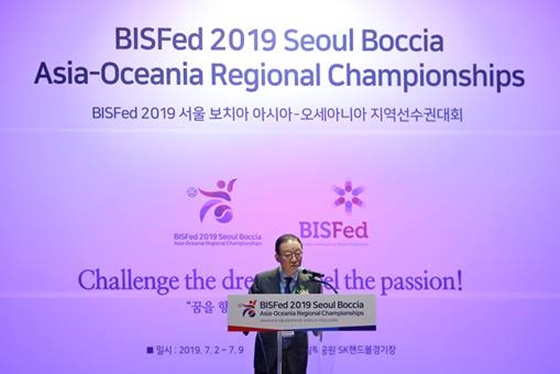 지난 4일 서울 올림픽공원 내 SK올림픽핸드볼 경기장에서 '2019 서울 보치아 아시아-오세아니아지역 선수권 대회' 개회식이 진행됐다.