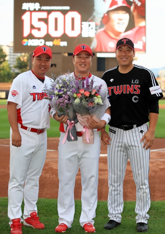 KIA타이거즈 외야수 최형우가 5일 광주 LG전에 앞서 3000루타와 1500경기 출장 기록 달성 시상식을 가졌다.
