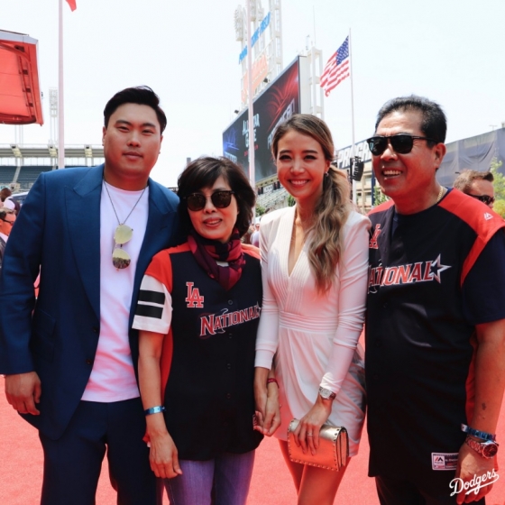 류현진이 어머니, 아내 배지현, 아버지와 함께 레드카펫 행사에 참가했다. /사진=다저스 공식 트위터