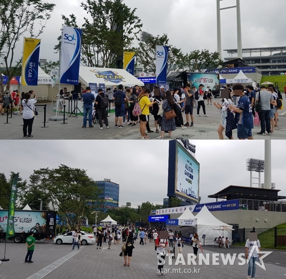 이날 오후 1시 현재 구름이 끼기는 했으나 비는 내리지 않고 있다. 다행히 무더위도 없는 상태다. 바람이 선선하게 불어 시원한 느낌마저 든다. 올해 올스타전은 비 때문에 걱정이 이만저만이 아니었다. 제5호 태풍 다나스의 영향으로 퓨처스 올스타전이 19일에서 20일로 연기 됐으나 비가 그치지 않은 탓에 결국 취소 됐다. 20일 올스타전도 그라운드 정비, 사전행사 진행 불가 등의 이유로 하루 연기됐다. 그런데도 이날 새벽까지 비가 내려 취소 위기에 몰렸다. 다행히 오전 8시부터 약해진 빗줄기는 현재 완전히 멈췄다. 올스타전 무산이라는 최악의 상황도 피하게 됐다.