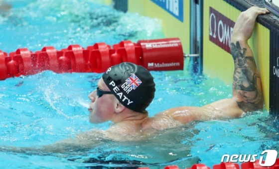 평영 100m에서 아담 피티(25·영국)가 자신이 갖고 있던 종전기록을 0.22초 앞당긴 56초88로 세계신기록을 갱신했다. 이번 대회서 처음 나온 세계 신기록이었다.