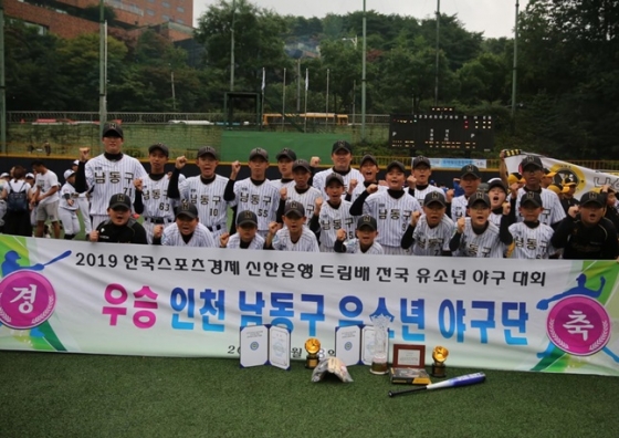 인천 남동구유소년야구단이 지난 28일 막을 내린 '2019 한국스포츠경제 신한은행드림배 전국유소년야구대회'에서 우승을 차지했다.