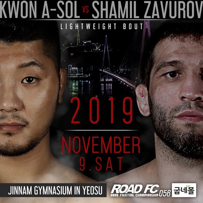ROAD FC 여수 대회인 굽네몰 ROAD FC 056은 11월 9일 전남 여수 진남체육관에서 열릴 예정이다. 이날 권아솔이 샤밀 자브로프와 ROAD FC 복귀전을 치른다.