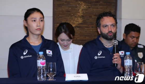 17일 오후 6시 서울 청담동 리베라호텔 2층 샤모니홀에서 진행된 '제20회 신한금융 서울 아시아여자배구선수권' 기자회견이 열렸다. 이 자리에는 라바리니 감독과 김연경을 비롯해 중국, 일본, 태국 팀의 감독 및 주장이 참석했다.