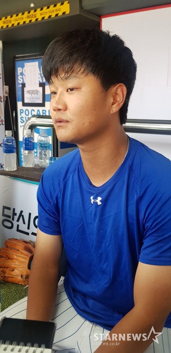 지난 8월 5일 신인드래프트 트라이아웃 이후 취재진의 질문에 답하고 있는 손호영. /사진=이원희 기자