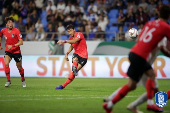 전열을 다듬은 후 재가 공격을 전개했다. 후반 33분 이재성이 문전으로 찔러준 볼을 황의조가 낚아채려 했으나 골키퍼가 먼저 걷어냈다. 34분 손흥민이 아크에서 프리킥을 얻었다. 이 과정에서 벤투 감독은 황의조를 빼고 김신욱으로 높이를 더했다. 이후 정우영이 환상적인 오른발 프리킥으로 쐐기포를 터트렸다. 막판 상대 공세를 잘 차단하면 승리를 챙겼다.