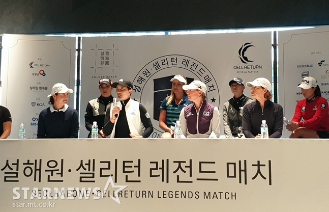 21일 강원도 양양에 위치한 설해원의 설해온천 레스토랑에서 '설해원·셀리턴 레전드 매치' 개최 기자회견이 열렸다. 이 자리에는 '한국 여자 골프 영웅' 박세리(42)를 비롯해 줄리 잉스터(59·미국), 아니카 소렌스탐(49·스웨덴), 로레나 오초아(38·멕시코) 레전드 4명의 선수들과 박성현(26), 이민지(23·호주) 아리야 주타누간(24·태국) 렉시 톰슨(24·미국) 등 현역 선수 4명이 참석했다.