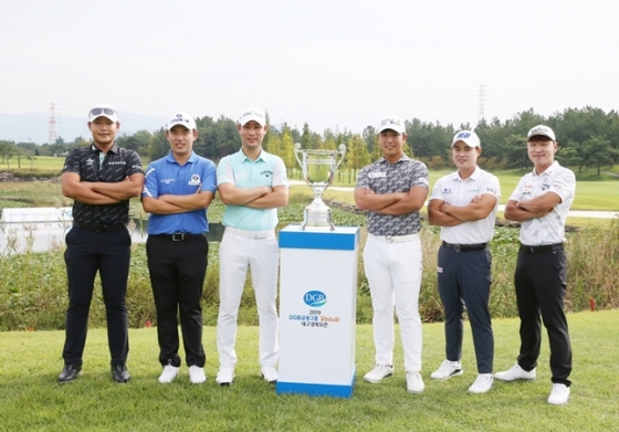 '2019 DGB금융그룹 Volvik 대구경북오픈(총상금 5억원, 우승상금 1억원)' 개막을 하루 앞둔 25일 경북 구미 소재 골프존카운티 선산(파72·7104야드) 18번홀(파5)에서 포토콜이 진행됐다.