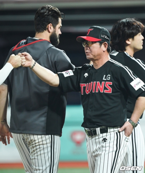 경기 후 류중일 감독은 "선발 임찬규가 호투를 했고, 어려운 상황에서 등판한 김대현이 잘 막아줬다. 고우석도 경기를 잘 마무리했다. 타선에서는 페게로의 추가 2타점이 주효했다"고 말했다.