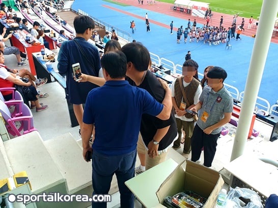 매와 같은 눈빛으로 선수들을 살피던 김학범 감독의 ‘팬 서비스’가 눈에 띈 건 하프타임이었다. 바쁜 발걸음에 끼니를 놓쳤던지 취재석에 준비된 도시락을 손에 쥘 찰나. 김학범 감독을 알아본 팬들이 들이닥쳤다.