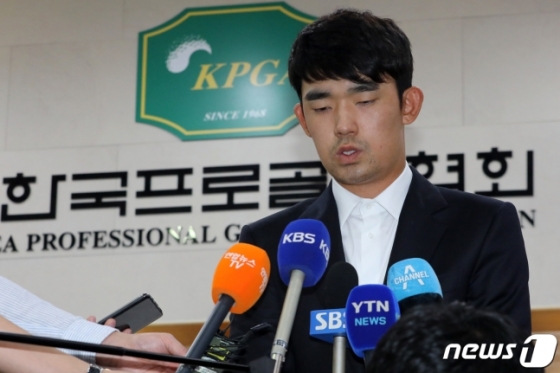 김비오(29·호반건설)가 1일 오전 경기도 성남시 분당구 한국프로골프협회에서 열린 상벌위원회를 마친 뒤 입장을 밝히고 있다./사진=뉴스1