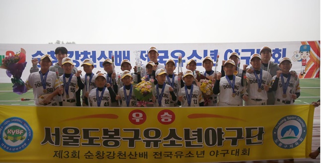 도봉구야구단은 지난 7일 막을 내린 '제3회 순창강천산배 전국유소년야구대회'의 메인리그인 유소년리그(U-13) 청룡에서 경기 파주시유소년야구단(감독 정상혁)과 공동 우승을 차지했다. 두 팀은 결승전에서 1-1 동점인 가운데 우천으로 승부를 가리지 못하고 경기를 마쳤다.