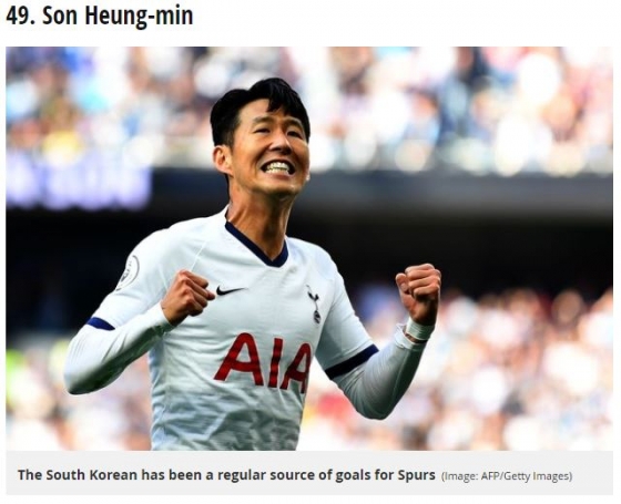손흥민은 10년간 EPL에서 뛴 선수 중 49위에 선정됐다. 이 매체는 "토트넘의 퀵실버 손흥민은 아시아 선수 EPL 최다골 기록 보유자다. 이번 시즌 EPL 통산 50호골을 넘어야 한다"고 손흥민을 설명했다.
